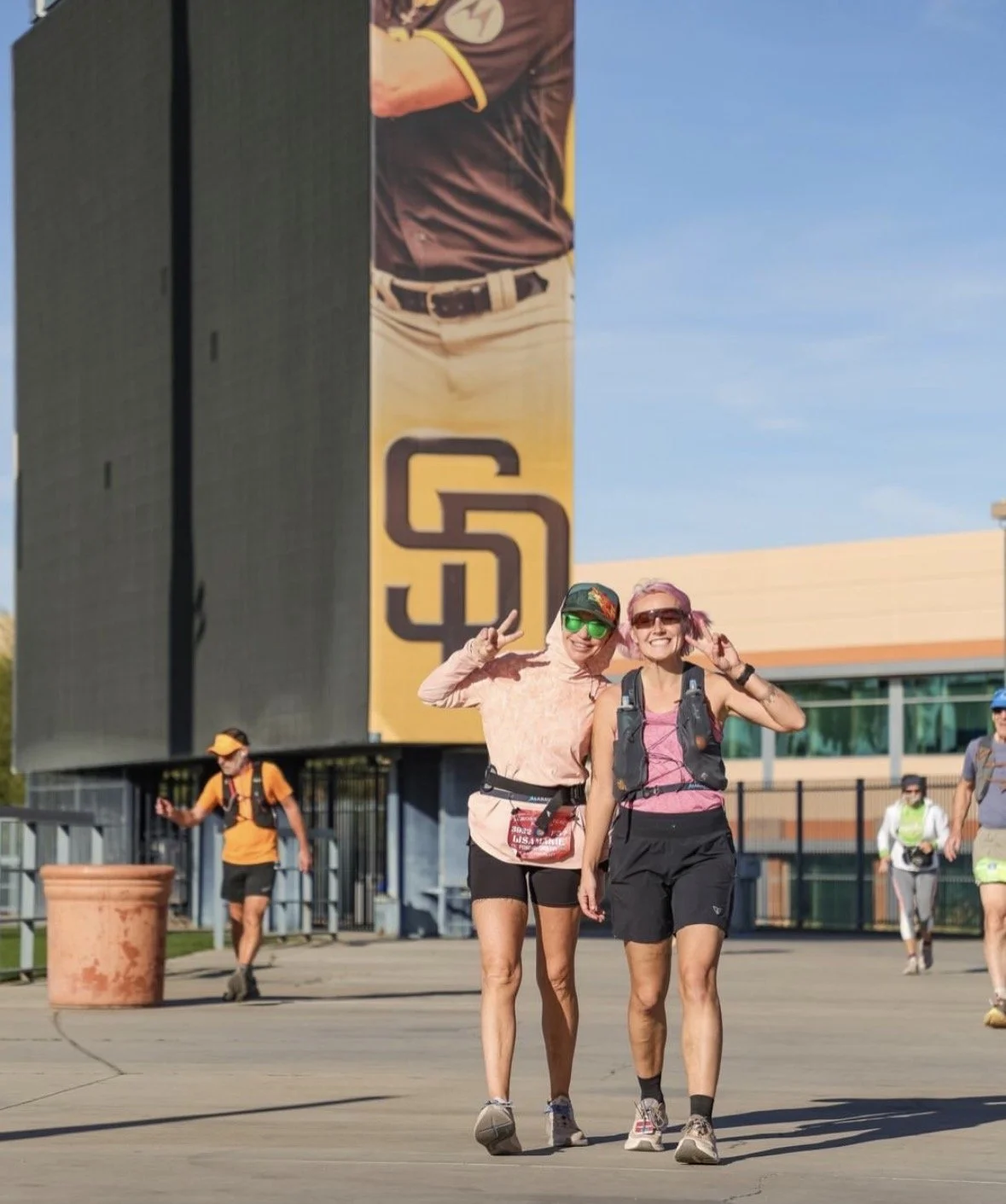 The day before packet pickup, Erik and I drove with the kids to Peoria Sports Complex to look at what the course would be like. Upon pulling in, I felt as though I had been there before. The San Diego Padres signs and the ballfields and open space of it all brought back distant memories from about 15-20 years ago of a ballgame that I attended with my Aunt Julie and the rest of my family. I quickly texted my dad because I assumed I was imagining this memory, but to my surprise, he verified that I had been there with her. My aunt passed away almost 10 years ago. Her heart and the lessons she pressed upon me about self-love compelled me to name my daughter after her. I was so thrilled at the concept of running around the memory I had of her for a full six days and felt empowered because I knew she would be cheering me on if she were still alive.